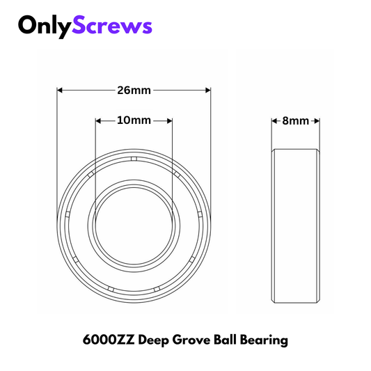 6000 ZZ - Deep Groove Ball Bearing (ID:10mm OD:26mm T:8mm)