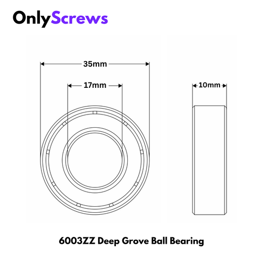 6003 ZZ - Deep Groove Ball Bearing (ID:17mm OD:35mm T:10mm)