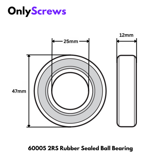 6005 2RS Rubber Sealed Ball Bearing (ID:25mm OD:47mm T:12mm)