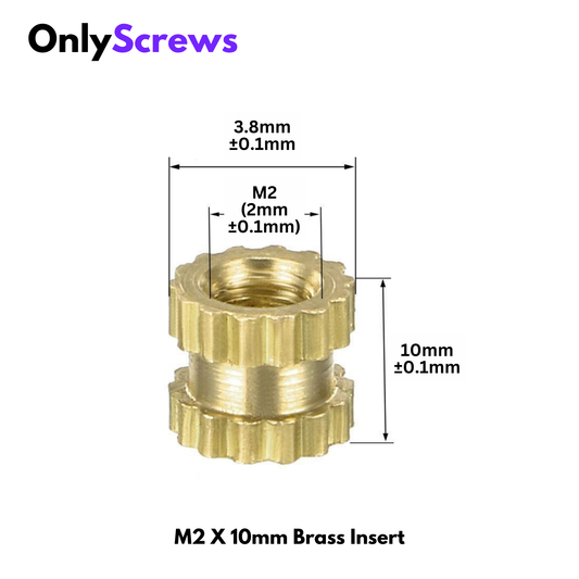 M2 X 10mm Brass Threaded Inserts (Dia. 2mm, Length 10mm)