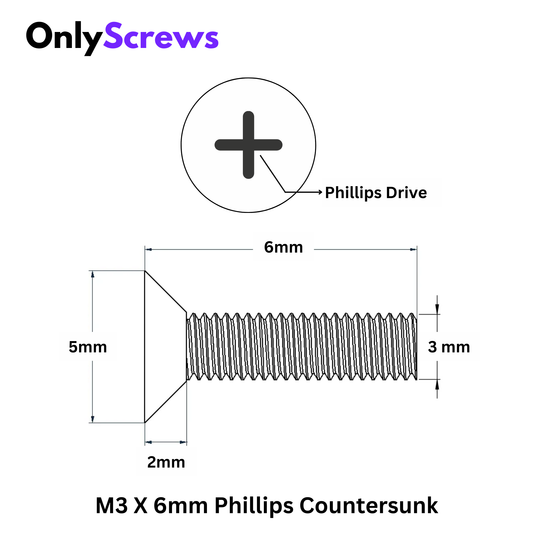 M3 X 6mm Phillips CSK SS 304 Screw (Dia. 3mm, Length 6mm)
