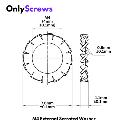 M4 External Serrated Star Washer SS304 (ID: 4.1mm OD:7.6)