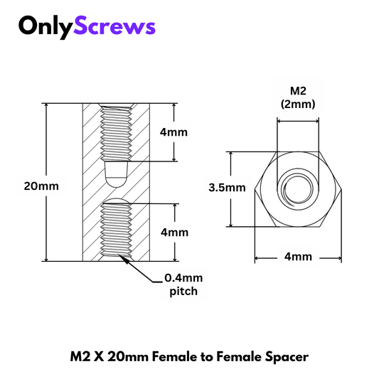 M2 X 20mm Female to Female Brass with Nickel plating Hex Threaded Standoff Spacer