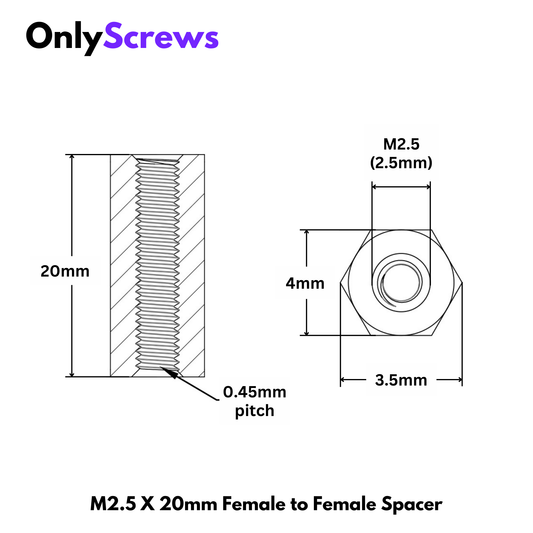 M2.5 X 20mm Female to Female Brass with Nickel plating Hex Threaded Standoff Spacer