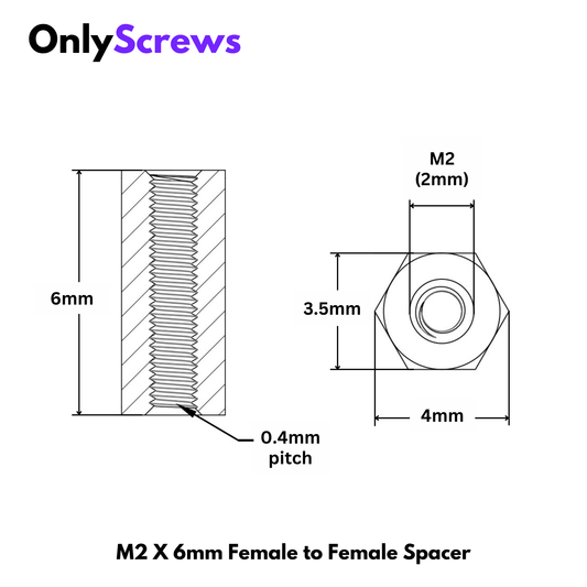 M2 X 6mm Female to Female Brass with Nickel plating Hex Threaded Standoff Spacer