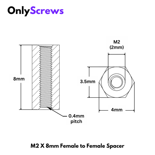 M2 X 8mm Female to Female Brass with Nickel plating Hex Threaded Standoff Spacer