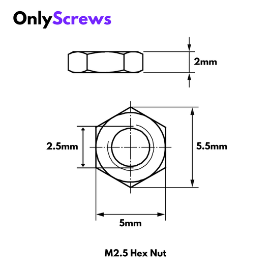 M2.5 Hex Nut Mild Steel with White Zinc Plating (Dia. 2.5mm)