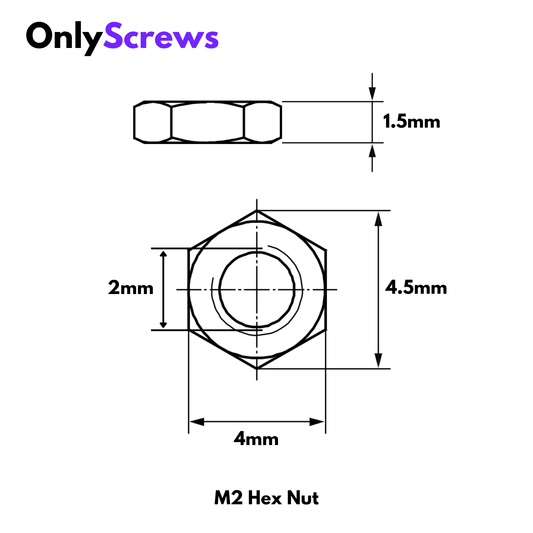 M2 Hex Nut Mild Steel with White Zinc Plating (Dia. 2mm)