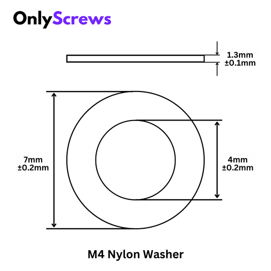 M4 Nylon Washer (ID: 4mm OD:7mm T:1.3mm)