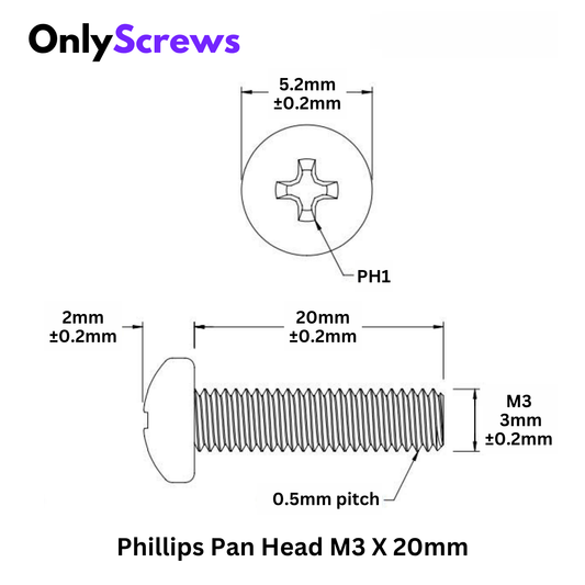 M3 X 20mm Phillips Pan head Mild Steel with Zinc Blue plating Screw (Dia. 3mm, Length 20mm)