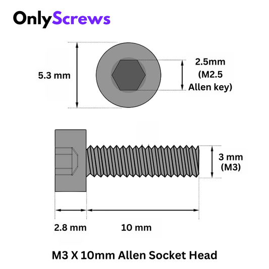 M3 X 10mm Hex (Allen) Socket Head High Tensile(12.9) Black oxide screw (Dia. 3mm, Length 10mm)