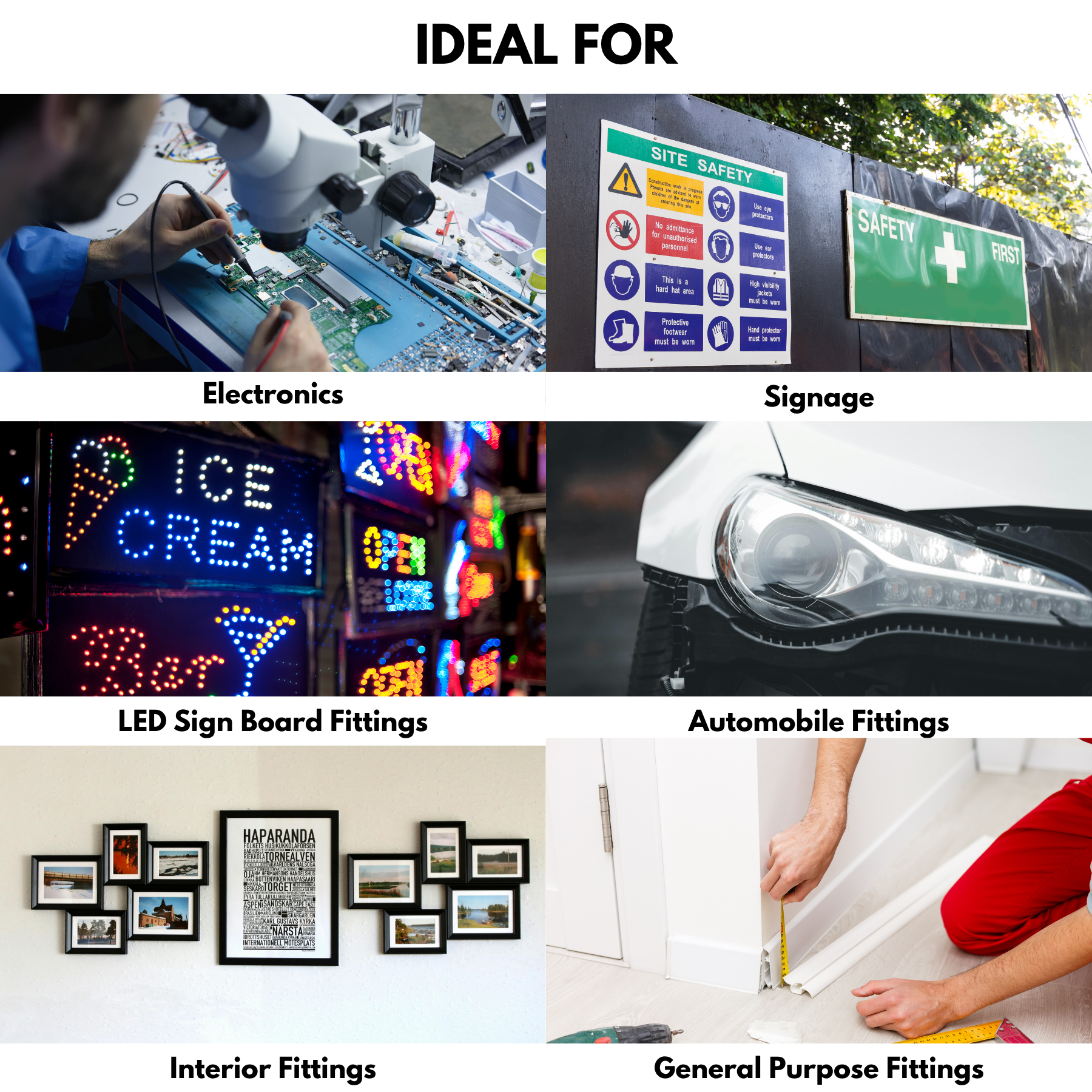 When used with 3M Adhesion 94 Primer (10ml), the tape’s bonding strength improves significantly — ensuring long-lasting performance even on slightly rough or low surface energy materials like plastic, metal, or painted substrates.