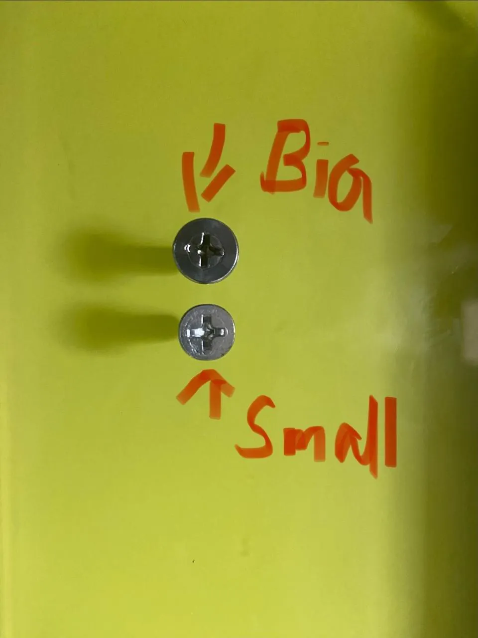 This screw has a cross-shaped indentation on its head, requiring a Phillips screwdriver for tightening.